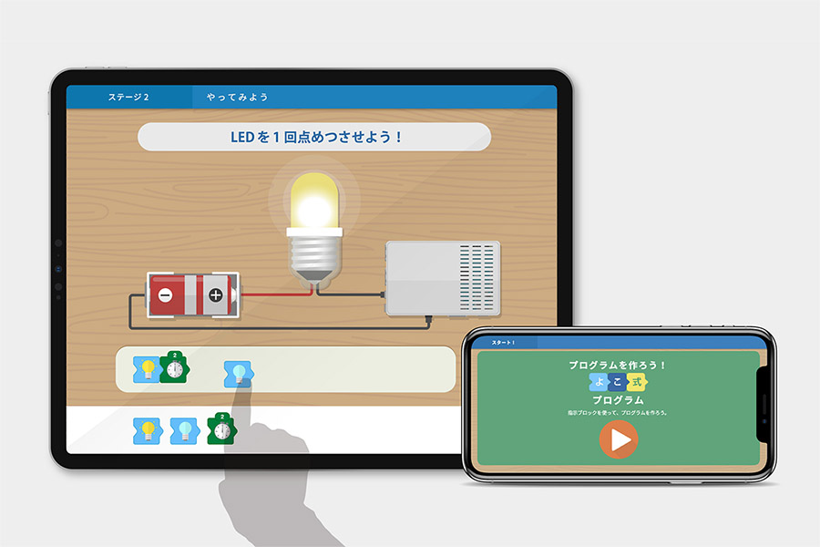 We were involved in the planning and design of the product to answer the question, “What kind of program is needed to make the LEDs flash? We were involved in the planning, design and development of the programming education application “Yoko” to answer the question, “What kind of program do we need to make the LEDs flash? Expressions”, students can go through the stages of learning and deepen their learning of both programming and unit content. It is.